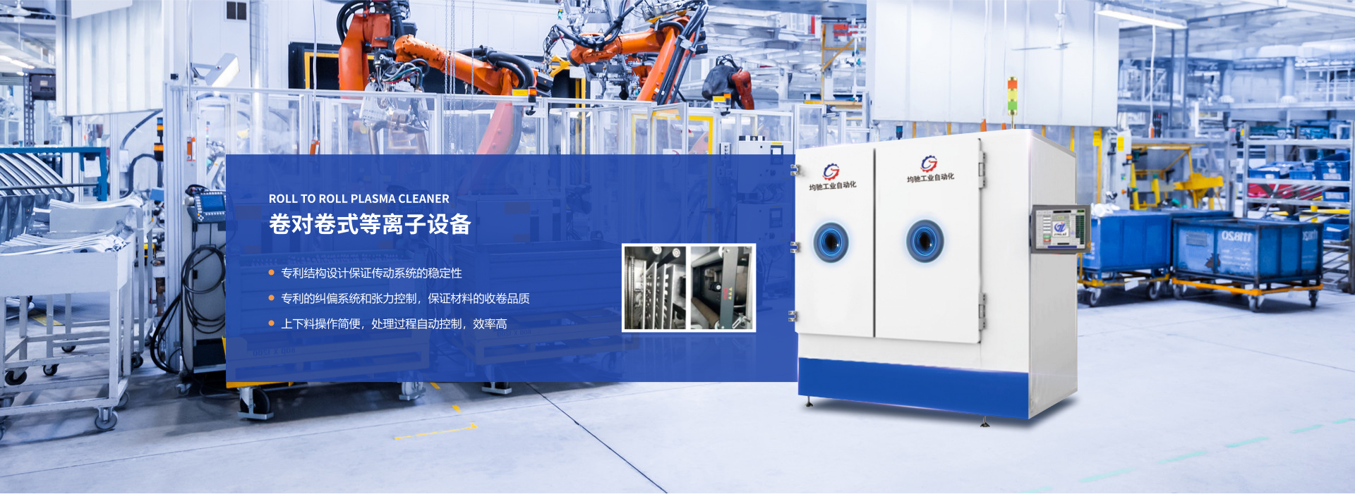 均馳工業(yè)自動(dòng)化科技(蘇州)有限公司是行業(yè)領(lǐng)先的非標(biāo)自動(dòng)化設(shè)備,中高端智能工廠解決方案提供商,自公司成立以來,我們一直專注智能智造,以技術(shù)創(chuàng)新為中心,致力于3C電子、半導(dǎo)體、新能源動(dòng)力電池、光伏、通信、汽車、紡織、印刷、生物醫(yī)療等行業(yè)提供服務(wù)。公司產(chǎn)品覆蓋PLASMA 清洗機(jī)、真空在線等離子清洗機(jī)、大氣等離子清洗機(jī)、寬幅等離子清洗設(shè)備、等離子表面處理設(shè)備、等離子除膠機(jī)、等離子刻蝕處理機(jī)、等離子電暈處理機(jī)等專業(yè)等離子清洗設(shè)備;均馳工業(yè)等離子處理設(shè)備對(duì)各類材料表面處理、活化、改性、蝕刻、除膠工藝中具有清洗材料表面有機(jī)物、提高材料表面親水性,改善材料表面附著力等優(yōu)勢(shì)。